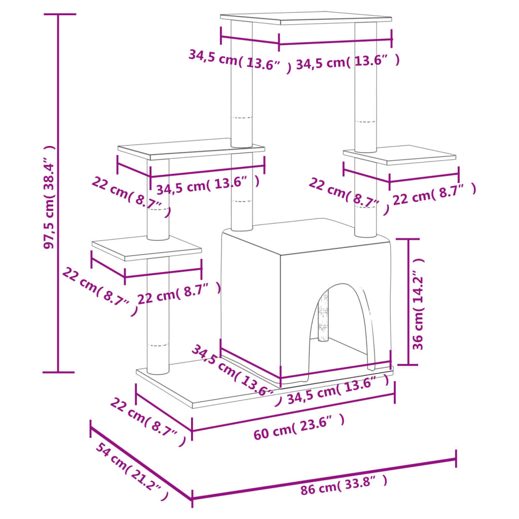 Keep your lovely cats entertained endlessly with this all-in-one cat tree! All-in-one cat tower: The multi-level cat furniture is designed with a house and platforms, providing a perfect place for your cats to climb, perch, scratch, hide, and also relax.Soft plush material: The extra-thick and soft plush is well ventilated, scratch-resistant, super comfy and warm.Natural sisal posts: The resilient and strong natural sisal posts of the cat scratching tree are perfect for your beloved cats to satisfy their scratching instinct and prevent them from scratching your furniture.