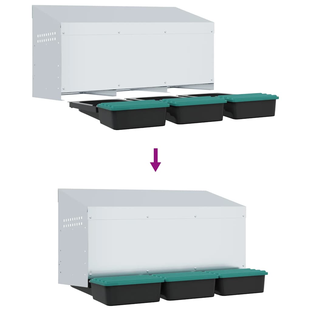 Chicken Nesting Box 3 Compartments Wall-Mounted Galvanised Steel