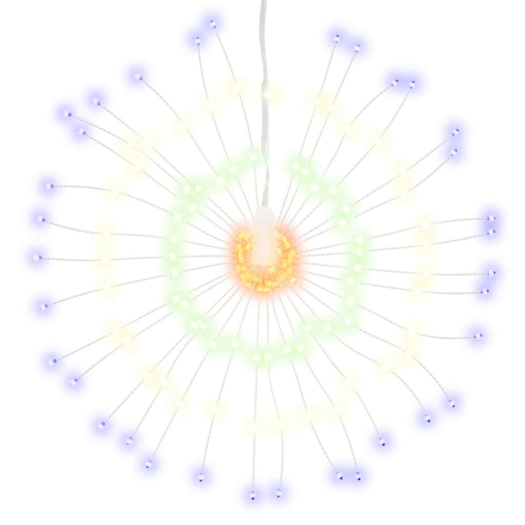 Create a festive atmosphere around your house during Christmas with these starburst lights! Multi-function remote control: The energy-saving LED starburst light has 8 different lighting effects (combination, in wave, sequential, slow glow, chasing/running water, slow fade, twinkle/flash and steady on), you can switch the lighting modes with the remote control (Battery not included. Use CR2025 coin cell battery) to create different holiday atmospheres.High flexibility & easy to DIY: The Christmas lighting is made of good-quality flexible copper wires, making it easy to bend into any shapes you like, such as bouquets, fireworks, etc.Timing function: The firework light has a timer button on the remote control that allows you to control the timing of the lights. The garden light will be 6 hours on and 18 hours off per day, so you don't have to worry about wasting any energy.Waterproof: The Xmas light and the battery case are waterproof and can be used indoors and outdoors. Thanks to the hook on the battery case, you can hang it anywhere.Wide applications: The Christmas fairy light is perfect for parties, Christmas, Halloween, eaves, yards, trees, gardens, and outdoor decorations.