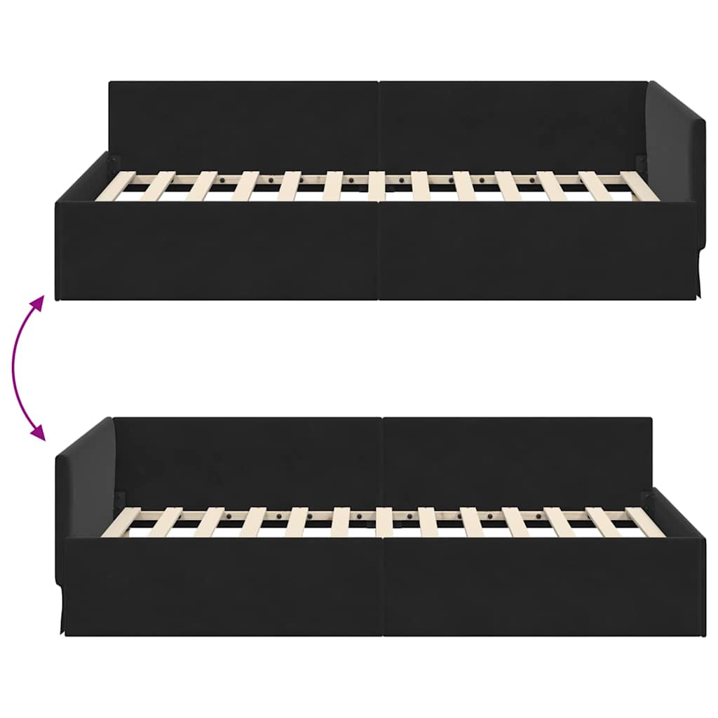 Corner Bed Frame Black 90 x 200 cm Velvet and Engineered wood