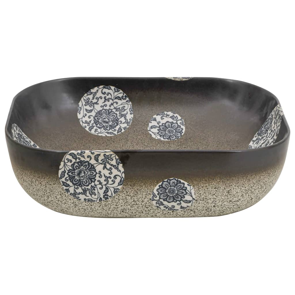 This countertop basin is a chic and timeless addition to any bathroom, washroom or powder room. Durable material: The bathroom sink, made of ceramic, has a durable surface that resists impacts, stains, and scratches, ensuring its long-lasting shine.Eye-catching patterns: This wash basin has exquisite patterns that bring a vintage, minimalist elegance and glamour, instantly refreshing your bathroom.Easy to clean: To maintain the beauty of the vanity basin, simply wipe its surface with a damp cloth. Good to know:Due to being handmade, the product may have a slightly uneven colour or an asymmetrical pattern, which makes each item unique. The delivery is random, ensuring exclusivity and individuality. Additionally, the size may vary within a 2-3 cm tolerance.