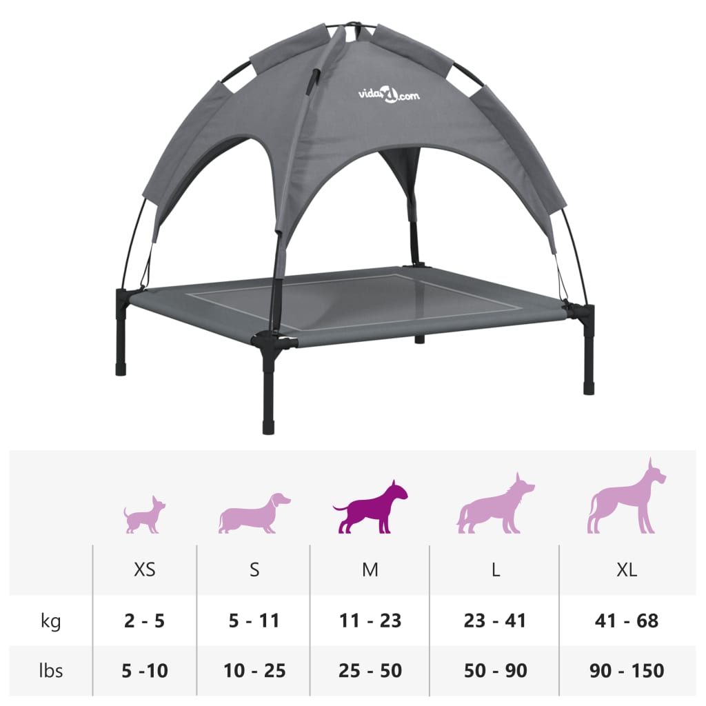 This dog bed with canopy is a comfortable and practical sleeping solution for your furry friend. Long-lasting and breathable material: The elevated dog bed is made of Oxford fabric and textilene, making it durable and suitable for daily outdoor use.Sturdy and stable frame: The powder-coated steel frame ensures the sturdiness and durability of the raised dog bed. The four non-slip rubber feet also add extra stability.Removable canopy: The dog couch bed comes with a removable canopy for full shade and protection.Elevated design: The dog bed keeps your dog out of dirt and moisture, providing a comfortable, dry sleeping surface.Wide applications: The dog bed cot is suitable for both indoor and outdoor use. It can be placed anywhere in the home, as well as on your porch, patio, or backyard.