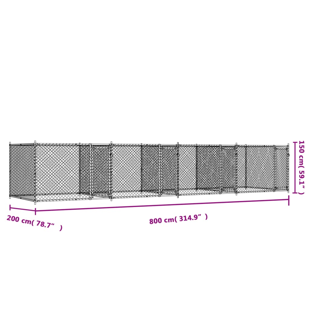 Dog Cage with Doors Grey 8x2x1.5 m Galvanised Steel