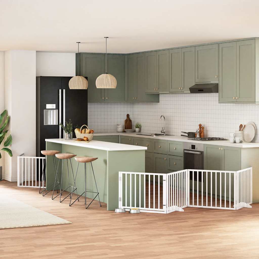 Dog Gate with Door Foldable 12 Panels White 960 cm Poplar Wood