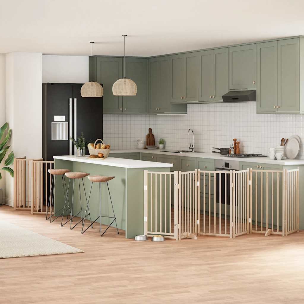 Dog Gate with Door Foldable 15 Panels 750 cm Poplar Wood