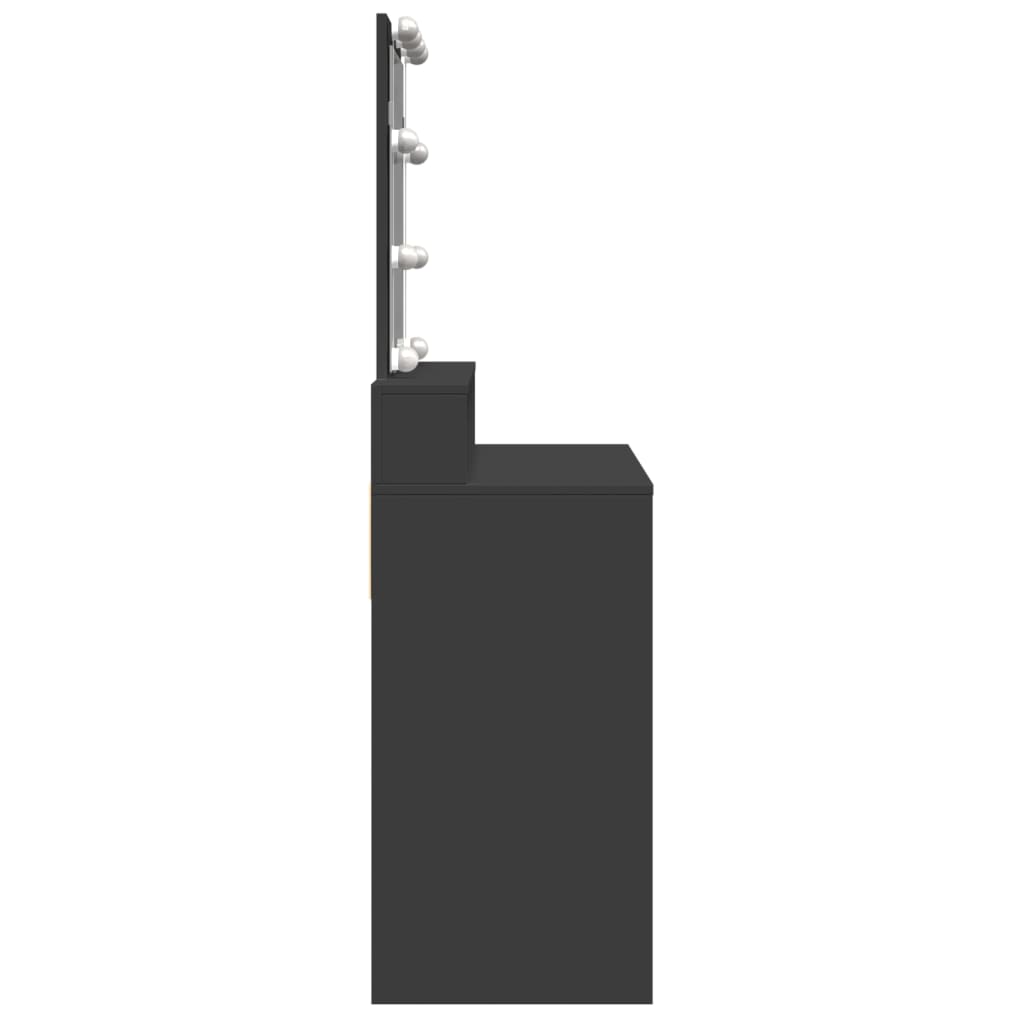 The dressing table is a great addition to your bedroom decor while keeping your cosmetics close at hand! Stable and durable material: Engineered wood is a durable and stable material with a smooth surface that is resistant to moisture, warping, and splitting, making it a reliable choice for a variety of projects.Ample storage space: The makeup table with 2 drawers and 3 compartments offers ample storage space for keeping your various daily essentials well organised and within easy reach.Utility mirror: A beautiful mirror provides the view for makeup application and adds an elegant touch to the vanity desk.LED light: The vanity table has LED bulbs with USB, which are easy to switch modes from warm to cold white. The featured LED bulbs around the mirror illuminate your beauty as well. Warning:To prevent it from tipping over, this product must be used with the provided wall attachment device.
