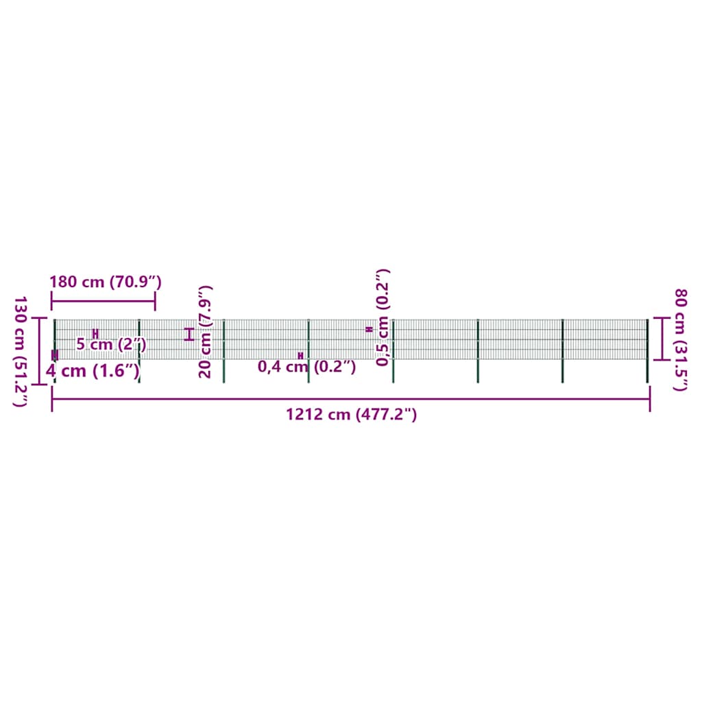 Featuring a simple yet practical design, this set of garden fence panels with posts will perfectly suit any garden. Made of weather-proof and corrosion-resistant powder-coated iron, this set of screen fencing is exceedingly sturdy and durable. The fencing set is easy to set up and will form a formidable barrier to keep unwanted guests away from your garden or patio. Delivery includes 14 x 2 D fence panels and 8 posts.