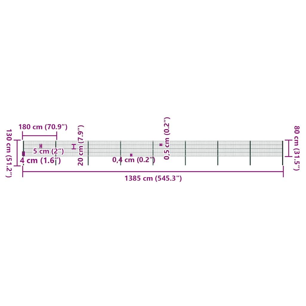 Featuring a simple yet practical design, this set of garden fence panels with posts will perfectly suit any garden. Made of weather-proof and corrosion-resistant powder-coated iron, this set of screen fencing is exceedingly sturdy and durable. The fencing set is easy to set up and will form a formidable barrier to keep unwanted guests away from your garden or patio. Delivery includes 16 x 2 D fence panels and 9 posts.