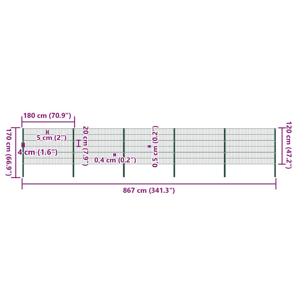 Fence Panel with Posts Iron 867x120 cm Green
