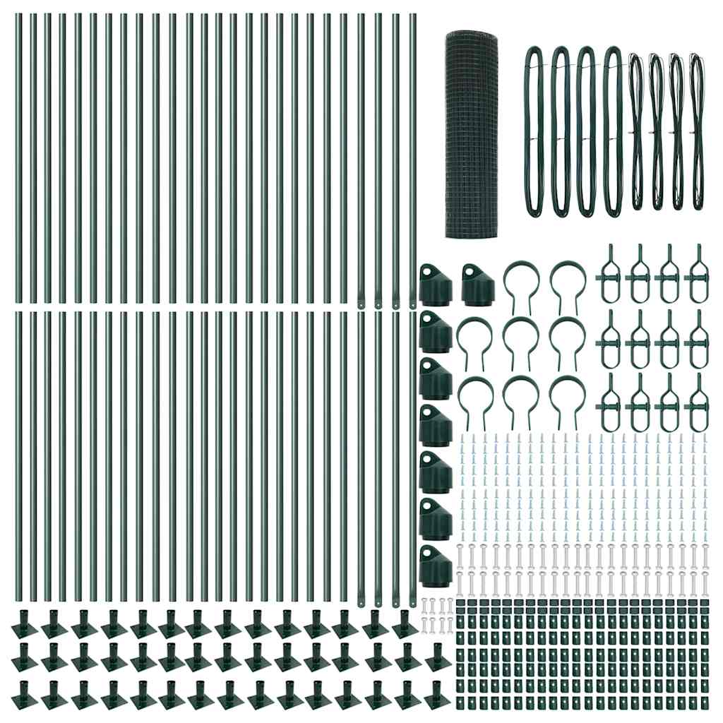 Fence with Posts Green 0.4 x 100 m Steel