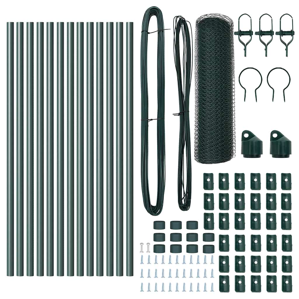 Fence with Posts Green 0.5 x 25 m PVC-coated steel