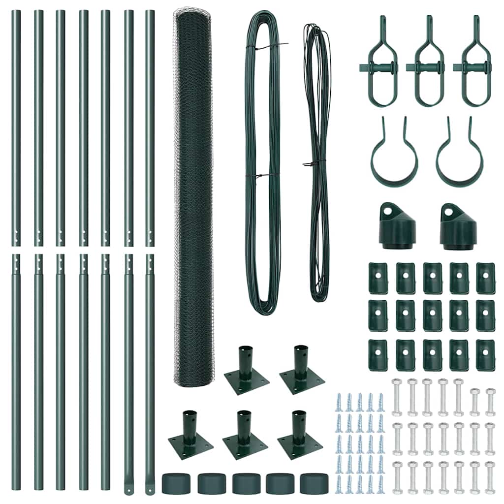 Fence with Posts Green 1.4 x 10 m PVC-coated steel