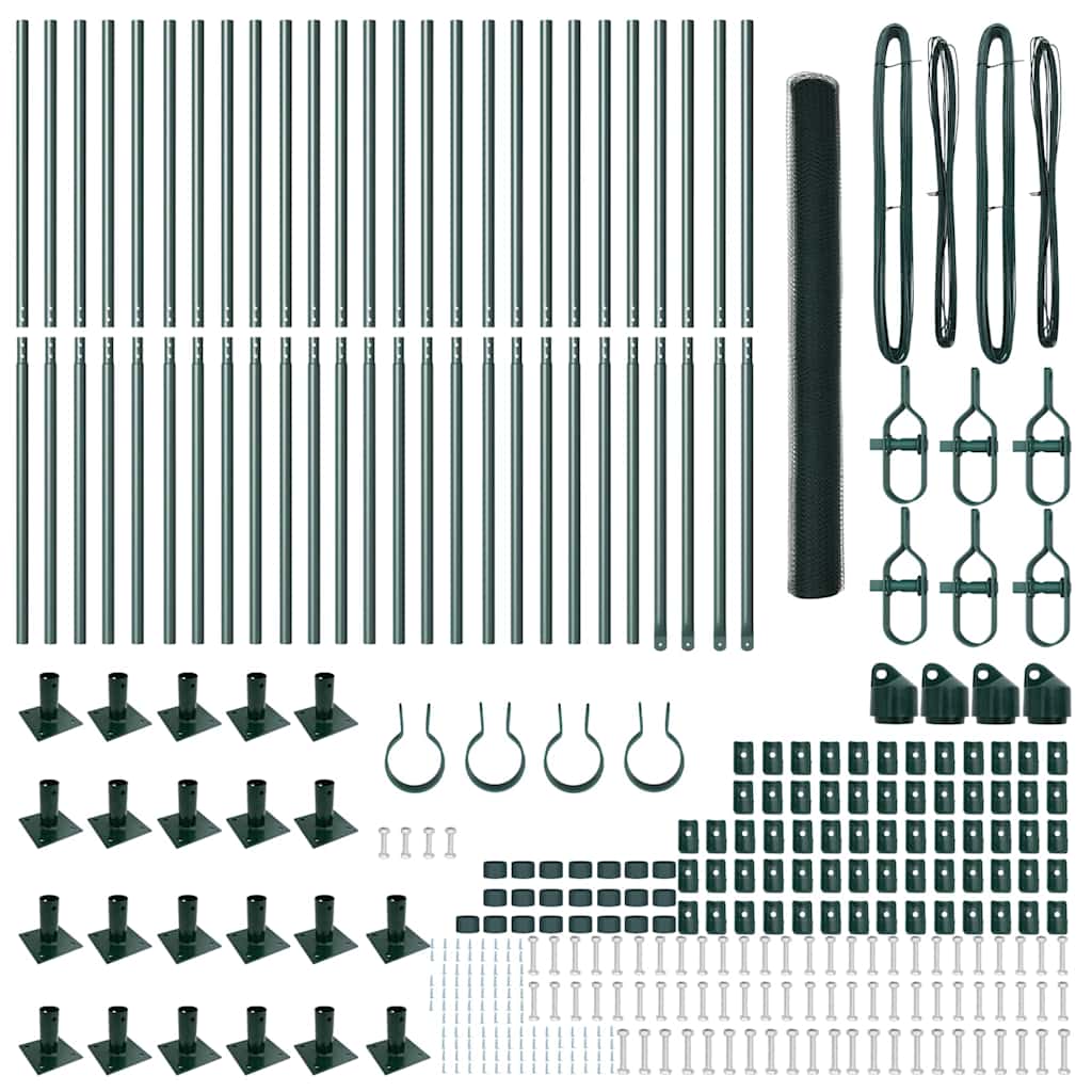 Fence with Posts Green 1.5 x 50 m PVC-coated steel