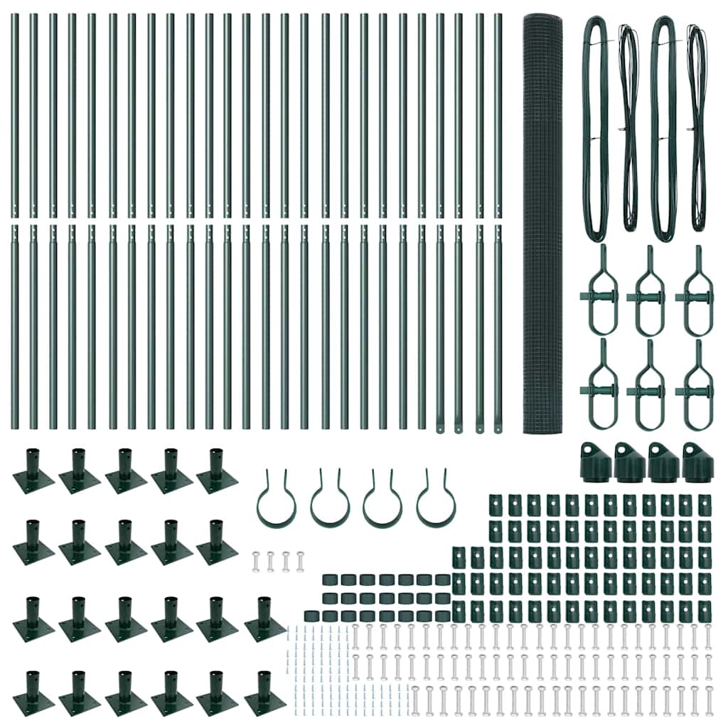Fence with Posts Green 1.5 x 50 m Steel