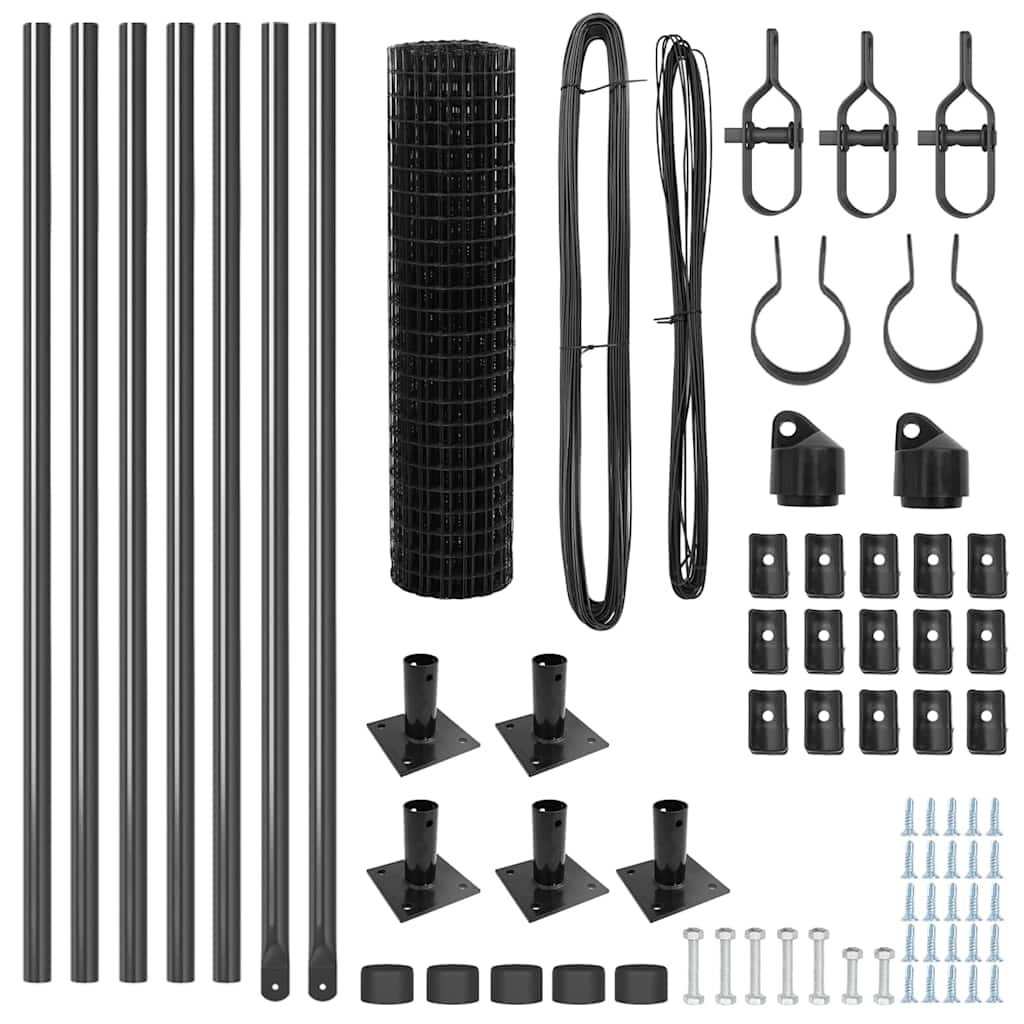 Fence with Posts Grey 0.4 x 10 m Steel