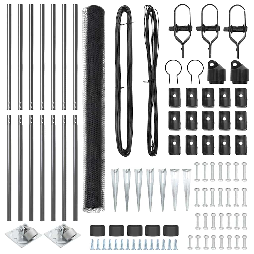 Fence with Posts Grey 1.6 x 10 m PVC-coated steel