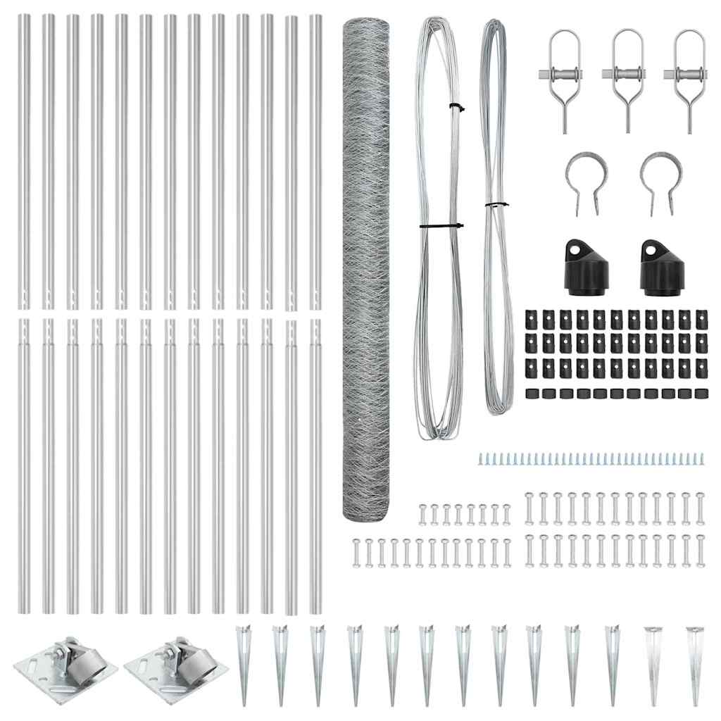 Fence with Posts Silver 1.6 x 25 m PVC-coated steel