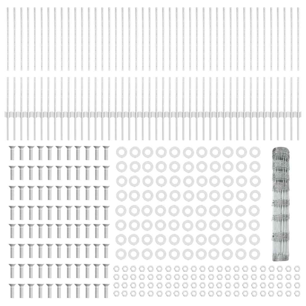 Fence with Posts Silver 1 x 100 m Steel