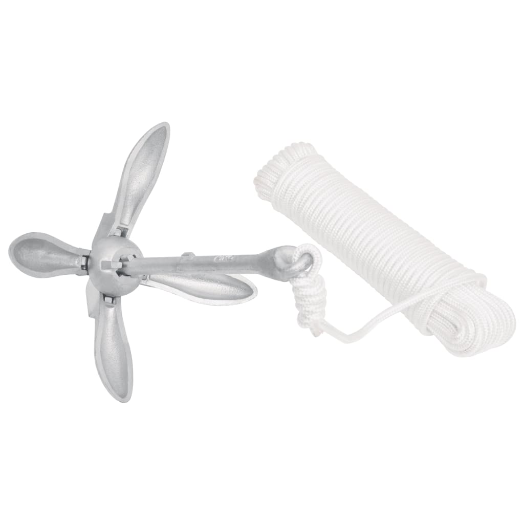 Folding Anchor with Rope Silver 8 kg Hot Dip Galvanized Cast Iron