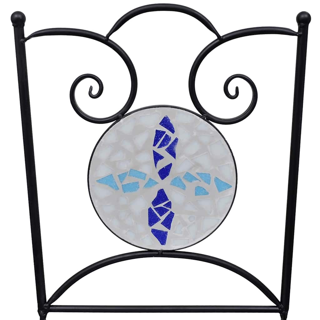 This set of mosaic chairs will make a decorative addition to your garden, patio, or balcony. It will be a pleasure to have a cuppa with your friends sitting on these chairs. Thanks to a strong powder-coated iron frame, this set is sturdy and durable. Due to the waterproof ceramic seat, these chairs are easy to clean. Delivery includes 2 chairs.
