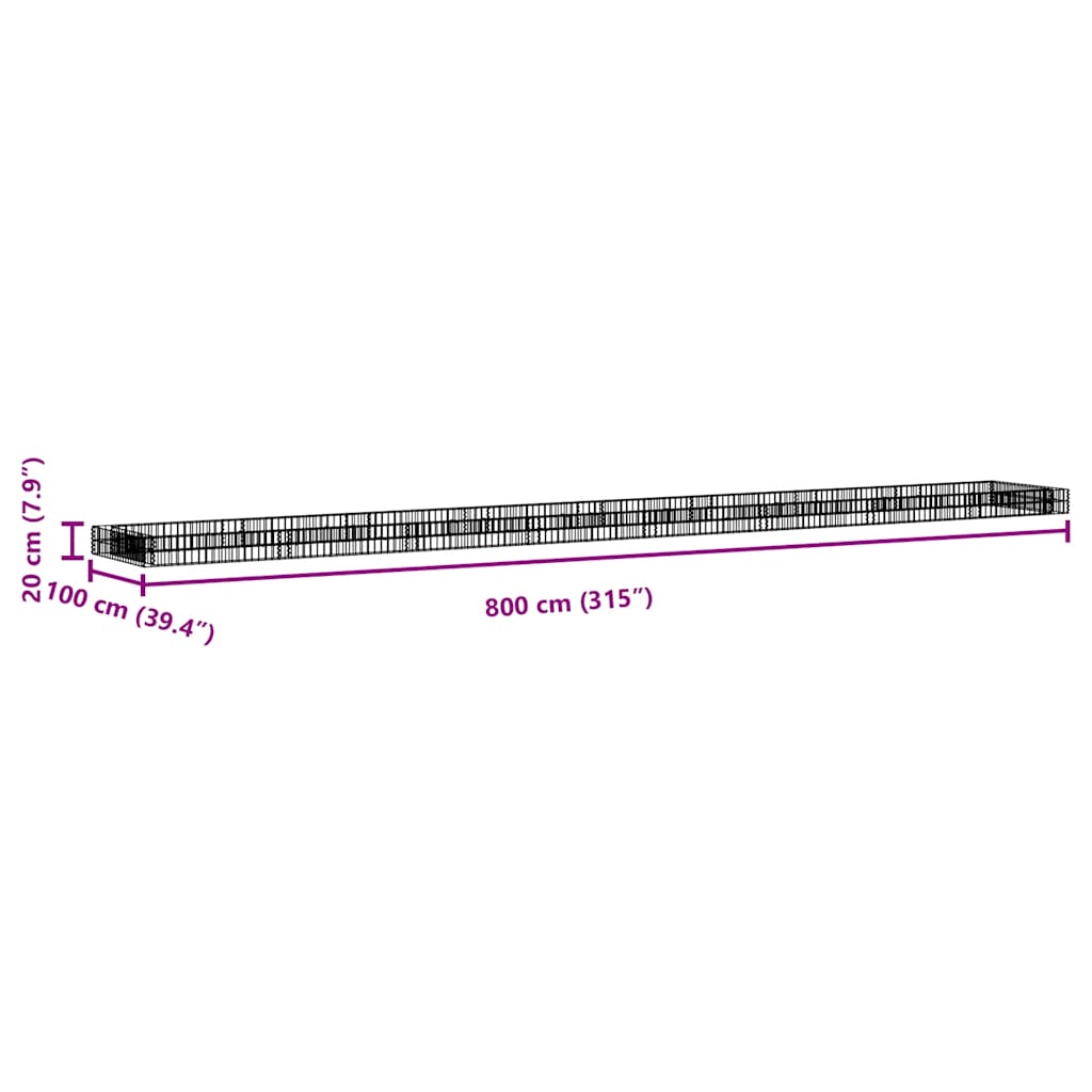 Gabion Raised Bed Galvanised Steel 800x100x20 cm
