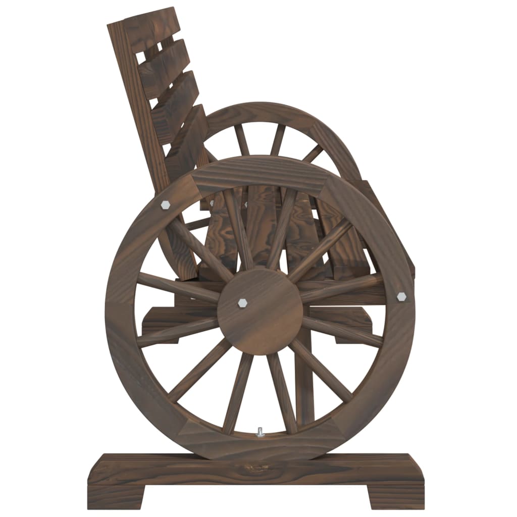 This wooden garden bench will make a great addition to your garden, patio, or terrace, allowing you to enjoy a cosy time with your family or friends. Solid fir wood: Solid fir wood is a beautiful and durable material that maintains its integrity even when exposed to moisture. It does not dry out or warp, making it a reliable choice.Comfortable seat experience: The backrest and armrests add extra seating comfort for the outdoor chair.Attractive design: The armrests of the outdoor bench feature a wagon wheel design that offers an eye-catching display from every angle. Good to know:To make sure your outdoor furniture stays beautiful, we recommend protecting it with a waterproof cover.