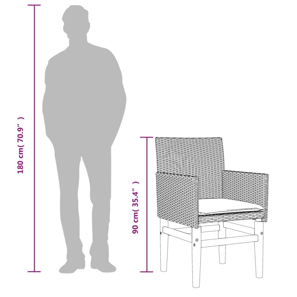 Relax and enjoy the outdoors in these comfortable garden chairs! Durable material: PE rattan, also known as poly rattan, is a strong, low-maintenance synthetic material that looks like natural rattan. It's lightweight, easy to clean, and commonly used for outdoor furniture due to its durability and weather-resistant properties.Comfortable seat experience: This outdoor furniture, complete with thickly padded cushions, offers a comfortable seating experience.Removable and washable cover: These seat cushions feature removable covers for easy washing and maintenance.Robust and stable frame: The wooden and powder-coated steel frame ensures the garden furniture is strong and stable for daily outdoor use. Good to know:To make sure your outdoor furniture stays beautiful, we recommend protecting it with a waterproof cover.