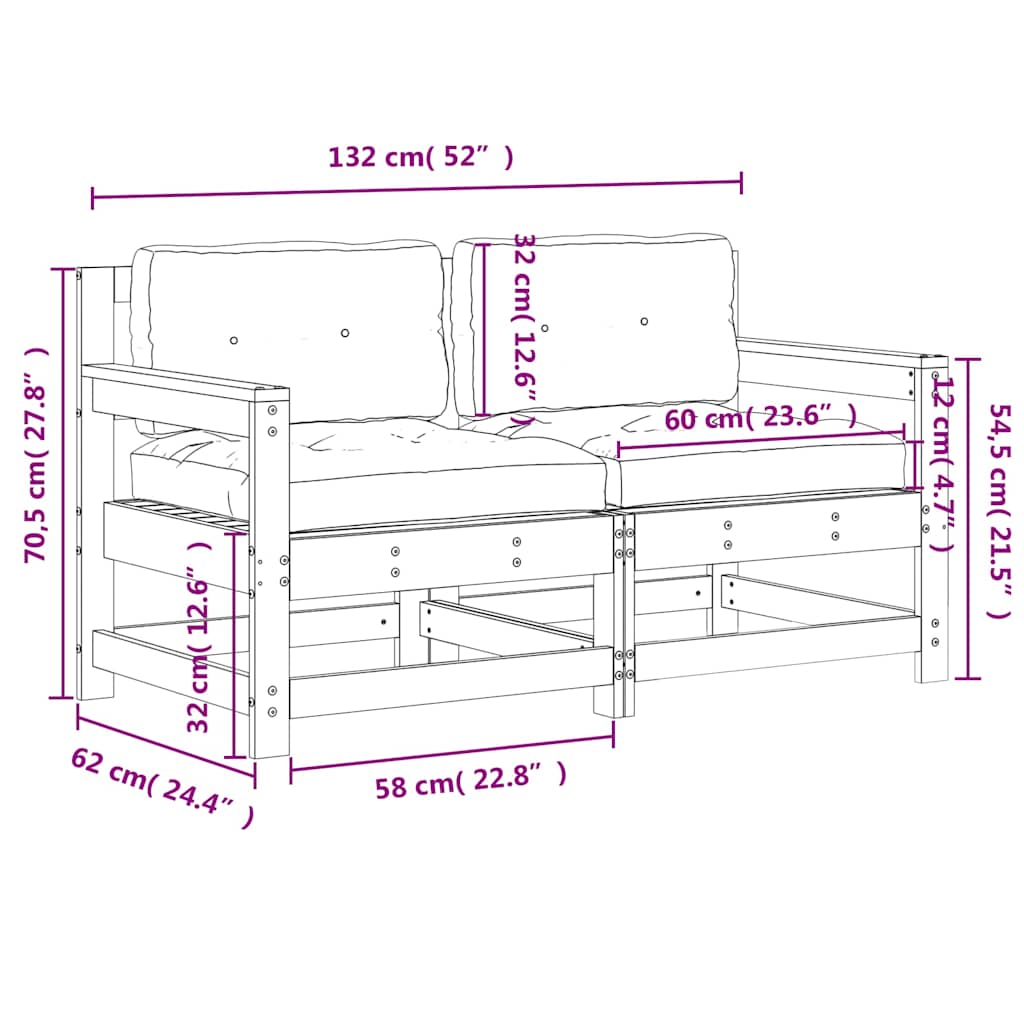 Garden Chairs with Cushions 2 pcs Impregnated Wood Pine