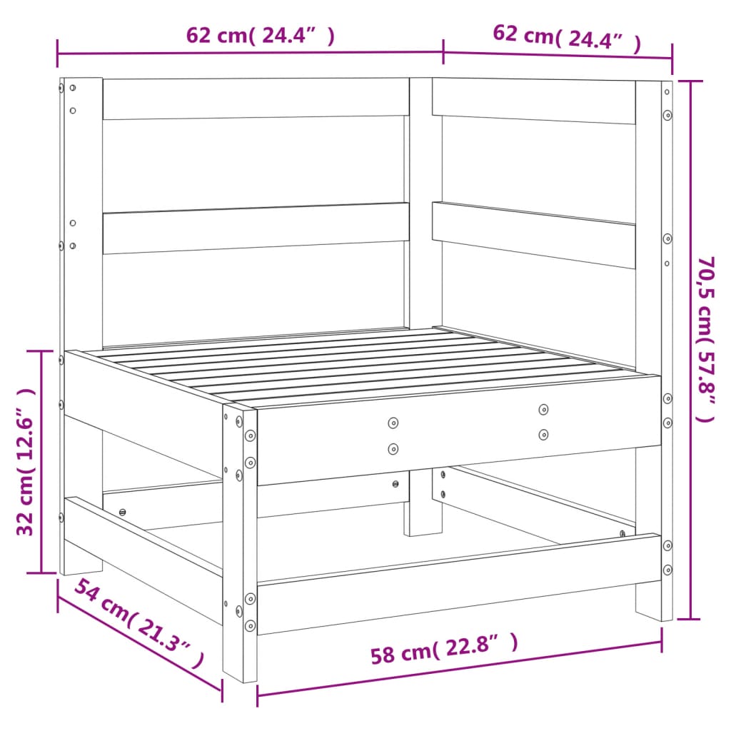 This wooden garden corner sofa, standing out with the slatted design, will make a great addition to your garden, patio, or terrace for enjoying a cosy time with your family or friends. Solid pine wood: Solid pine wood is a beautiful natural material. Pine wood has a straight grain, and the knots give the material its signature, rustic look.Comfortable seat experience: The backrest adds extra seating comfort for the garden sofa.Modular design: The sectional sofa is flexible and easy to move around. You can combine it with other modular segments in our shop to create your own personal garden lounge set configurations! Good to know:To make sure your outdoor furniture stays beautiful, we recommend protecting it with a waterproof cover.
