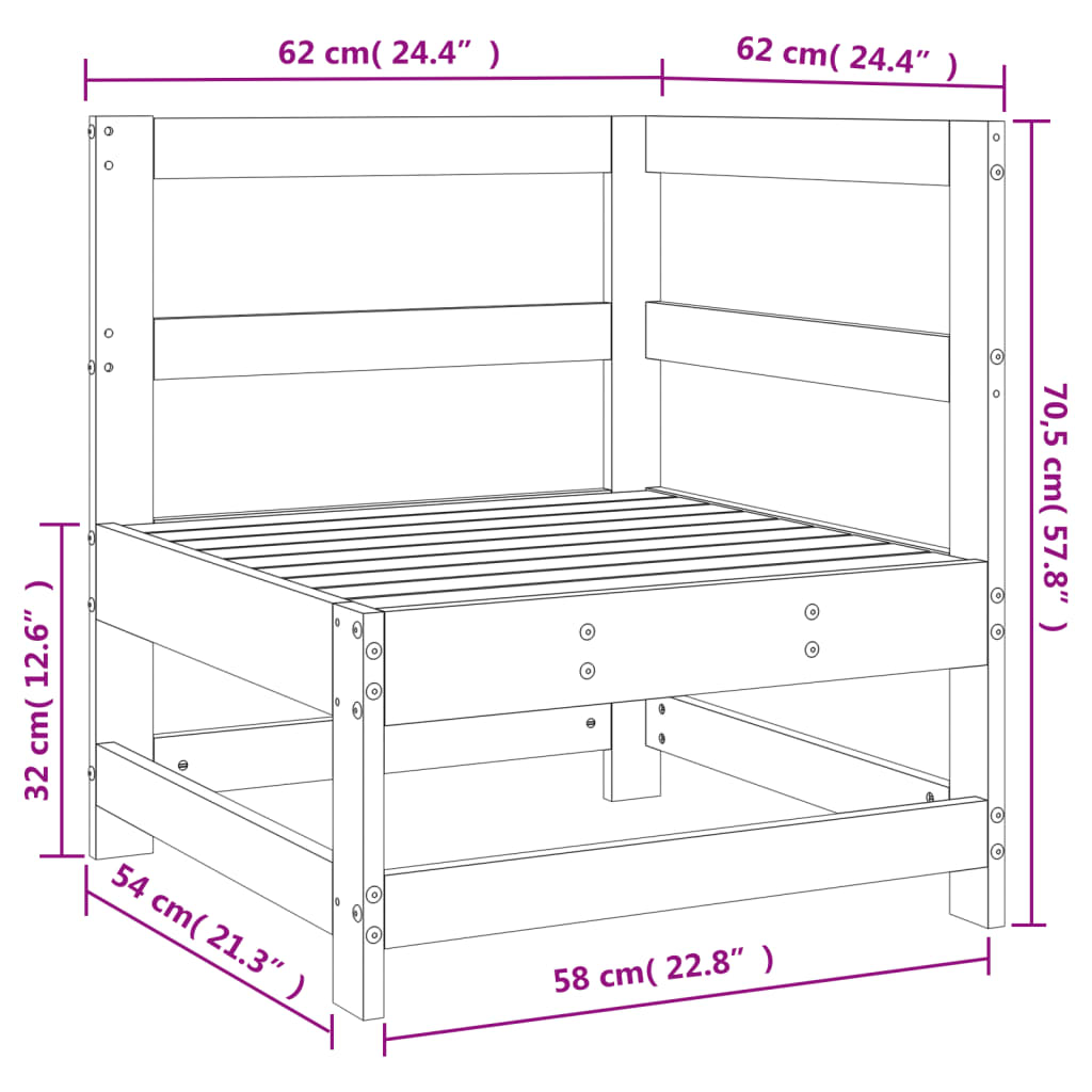 This wooden garden corner sofa, standing out with the slatted design, will make a great addition to your garden, patio, or terrace for enjoying a cosy time with your family or friends. Solid pine wood: Solid pine wood is a beautiful natural material. Pine wood has a straight grain, and the knots give the material its signature, rustic look.Comfortable seat experience: The backrest adds extra seating comfort for the garden sofa.Modular design: The sectional sofa is flexible and easy to move around. You can combine it with other modular segments in our shop to create your own personal garden lounge set configurations! Good to know:To make sure your outdoor furniture stays beautiful, we recommend protecting it with a waterproof cover.