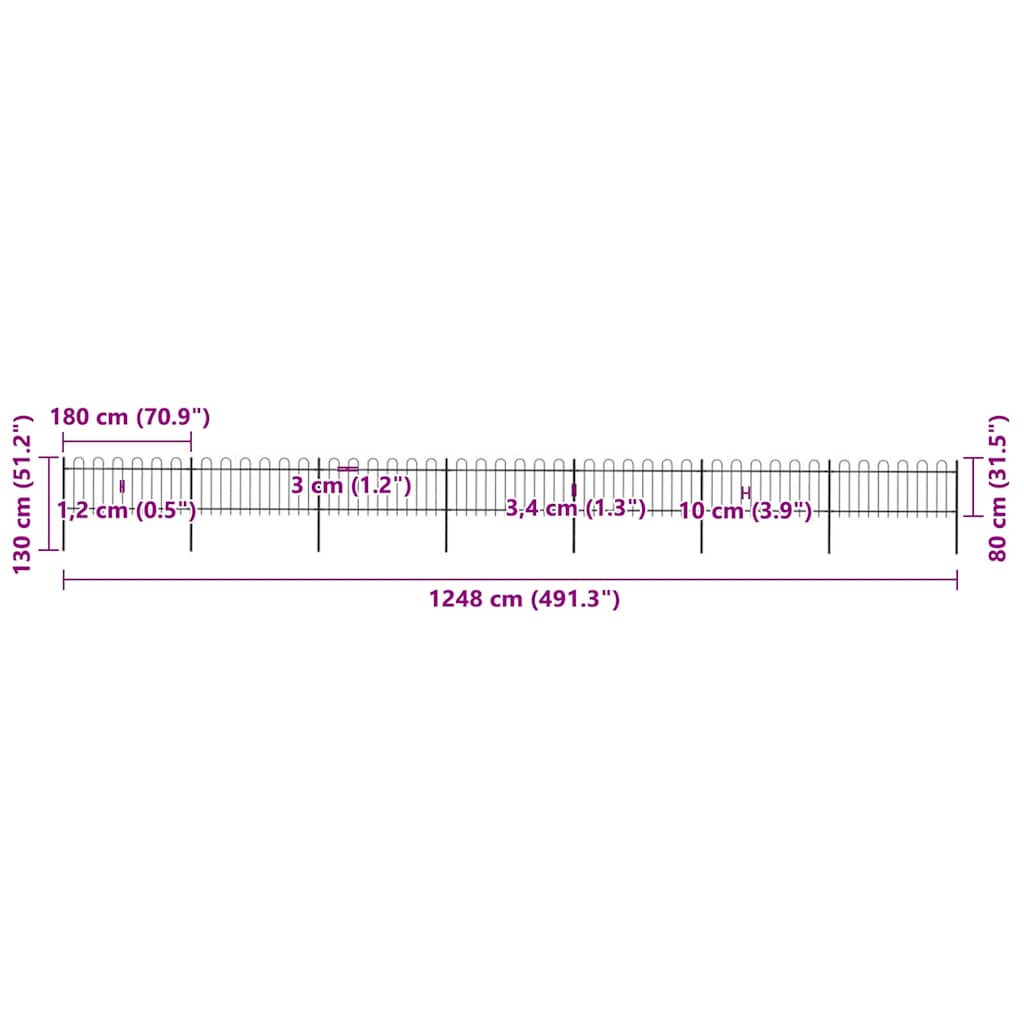 Garden Fence with Hoop Top Steel 1248x80 cm Black