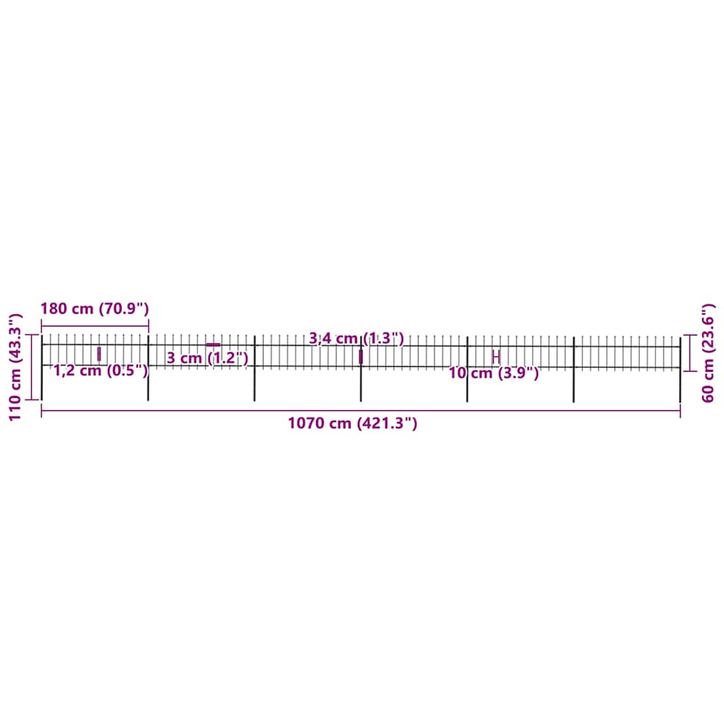 Garden Fence with Spear Top Steel 1070x60 cm Black