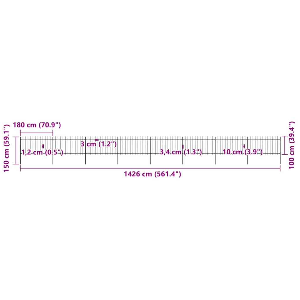 Garden Fence with Spear Top Steel 1426x100 cm Black