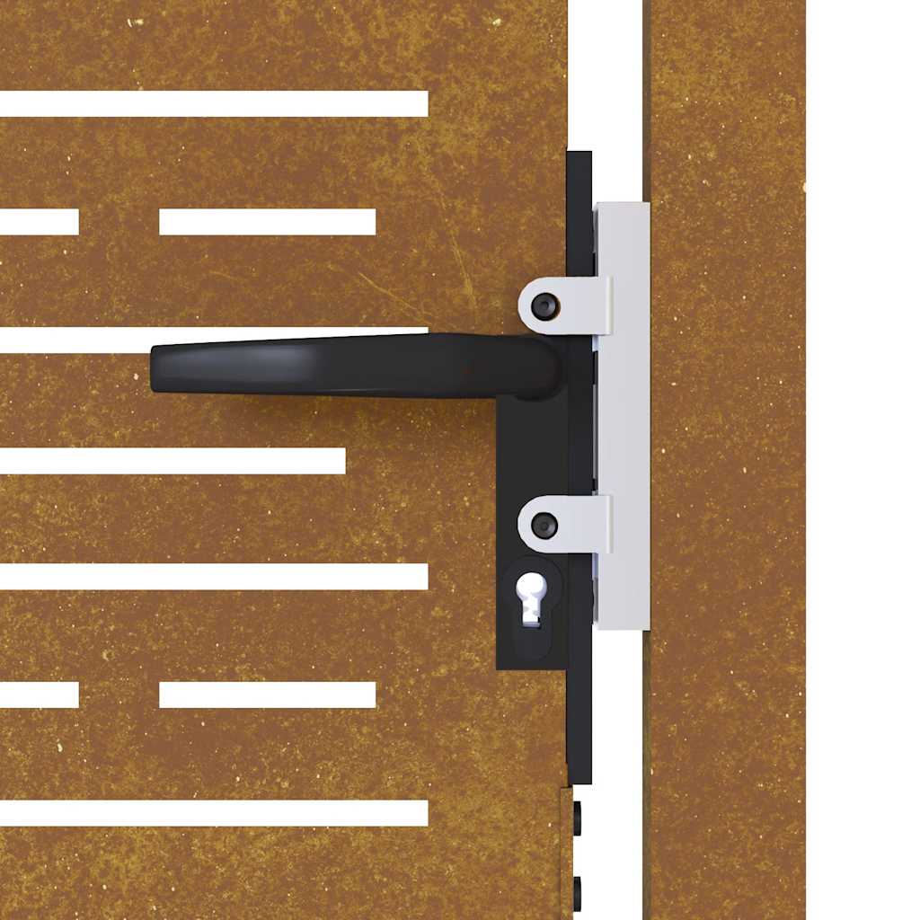 This garden gate, featuring a perfect combination of strength and elegance, makes an ideal entry point for the fence around your garden or patio. Durable material: The metal gate is made of corten steel. Corten steel, also known as weathering steel. This is anti-corrosive by its very nature. It develops a rusty protective layer against corrosion when first exposed to atmospheric conditions. Thus, you don't need to paint it. This can help you save on maintenance and repair costs. The distinctive brown colour on the corten steel will surely be an eye-catcher. Finally, weathering steel is exceptionally durable and will stand up to the test of time. Laser-cut design: The side gate has a beautiful laser-cut design that adds a special charm to your home.Lockable system: The steel gate is equipped with a lockable system for extra security.Stable base: The 4 mounting holes in the base of the gate post allow you to fix it to the ground for added stability. Good to know:This product should be assembled.The gate frame is not included in the delivery.This product is not rusted yet and has a normal metal colour when you receive it, but rust will develop over time. You could speed up the rusting process by spraying it with soap water and salt water. To keep your clothes stain-free, avoid contact with the developing rust layer.