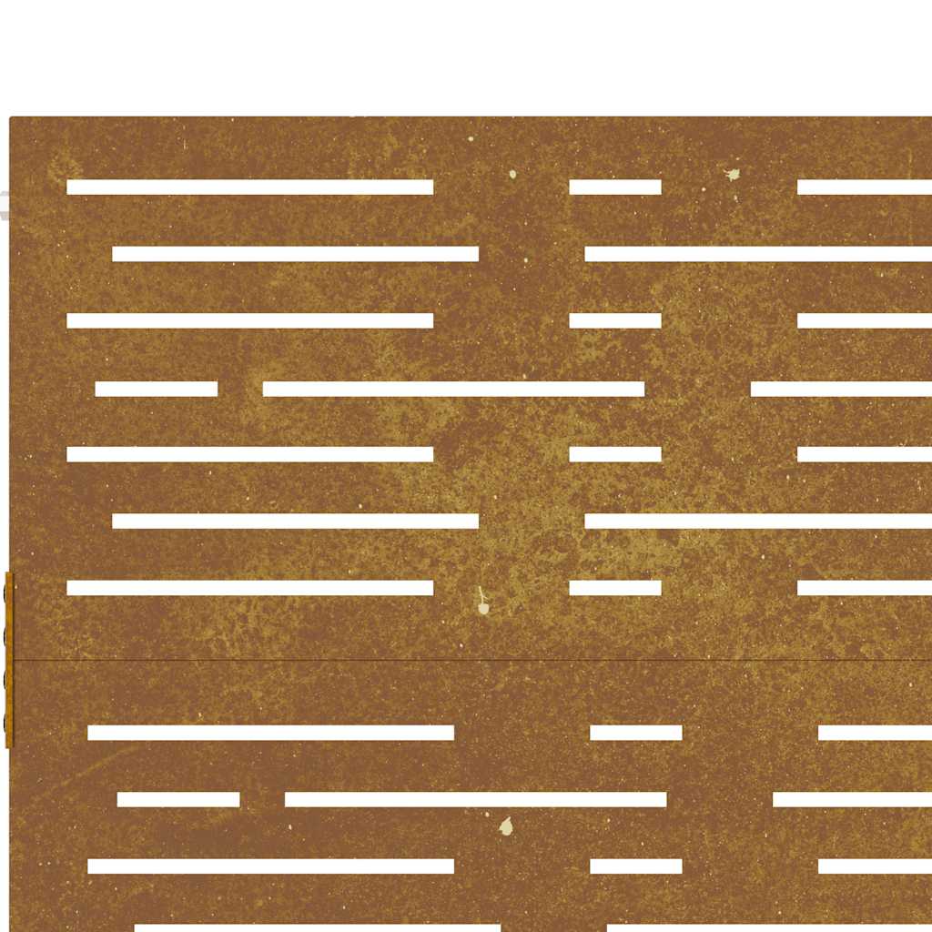 This garden gate, featuring a perfect combination of strength and elegance, makes an ideal entry point for the fence around your garden or patio. Durable material: The metal gate is made of corten steel. Corten steel, also known as weathering steel. This is anti-corrosive by its very nature. It develops a rusty protective layer against corrosion when first exposed to atmospheric conditions. Thus, you don't need to paint it. This can help you save on maintenance and repair costs. The distinctive brown colour on the corten steel will surely be an eye-catcher. Finally, weathering steel is exceptionally durable and will stand up to the test of time. Laser-cut design: The side gate has a beautiful laser-cut design that adds a special charm to your home.Lockable system: The steel gate is equipped with a lockable system for extra security.Stable base: The 4 mounting holes in the base of the gate post allow you to fix it to the ground for added stability. Good to know:This product should be assembled.The gate frame is not included in the delivery.This product is not rusted yet and has a normal metal colour when you receive it, but rust will develop over time. You could speed up the rusting process by spraying it with soap water and salt water. To keep your clothes stain-free, avoid contact with the developing rust layer.