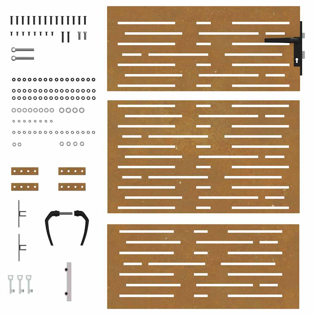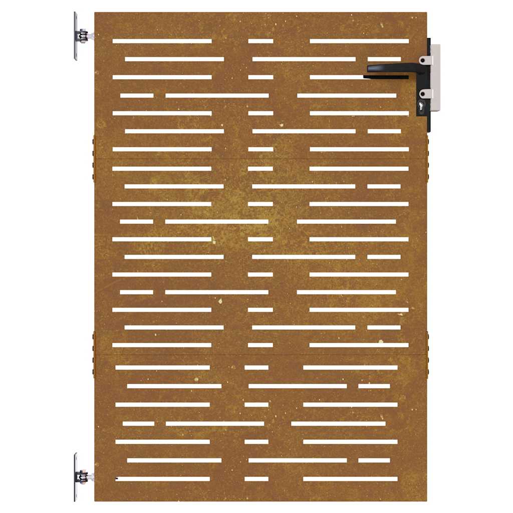 This garden gate, featuring a perfect combination of strength and elegance, makes an ideal entry point for the fence around your garden or patio. Durable material: The metal gate is made of corten steel. Corten steel, also known as weathering steel. This is anti-corrosive by its very nature. It develops a rusty protective layer against corrosion when first exposed to atmospheric conditions. Thus, you don't need to paint it. This can help you save on maintenance and repair costs. The distinctive brown colour on the corten steel will surely be an eye-catcher. Finally, weathering steel is exceptionally durable and will stand up to the test of time. Laser-cut design: The side gate has a beautiful laser-cut design that adds a special charm to your home.Lockable system: The steel gate is equipped with a lockable system for extra security. Good to know:This product should be assembled. The gate frame and posts are not included in the delivery.This product is not rusted yet and has a normal metal colour when you receive it, but rust will develop over time. You could speed up the rusting process by spraying it with soap water and salt water. To keep your clothes stain-free, avoid contact with the developing rust layer.