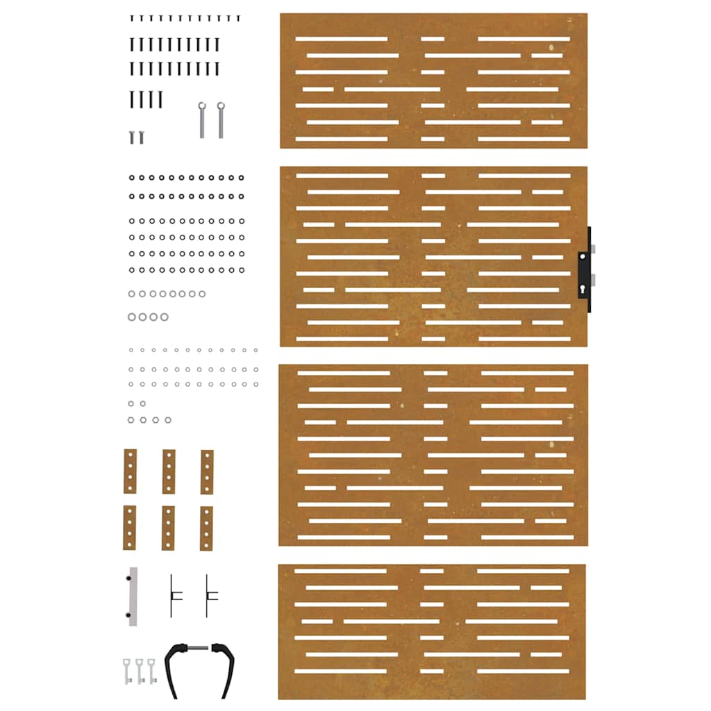 This garden gate, featuring a perfect combination of strength and elegance, makes an ideal entry point for the fence around your garden or patio. Durable material: The metal gate is made of corten steel. Corten steel, also known as weathering steel. This is anti-corrosive by its very nature. It develops a rusty protective layer against corrosion when first exposed to atmospheric conditions. Thus, you don't need to paint it. This can help you save on maintenance and repair costs. The distinctive brown colour on the corten steel will surely be an eye-catcher. Finally, weathering steel is exceptionally durable and will stand up to the test of time. Laser-cut design: The side gate has a beautiful laser-cut design that adds a special charm to your home.Lockable system: The steel gate is equipped with a lockable system for extra security. Good to know:This product should be assembled. The gate frame and posts are not included in the delivery.This product is not rusted yet and has a normal metal colour when you receive it, but rust will develop over time. You could speed up the rusting process by spraying it with soap water and salt water. To keep your clothes stain-free, avoid contact with the developing rust layer.