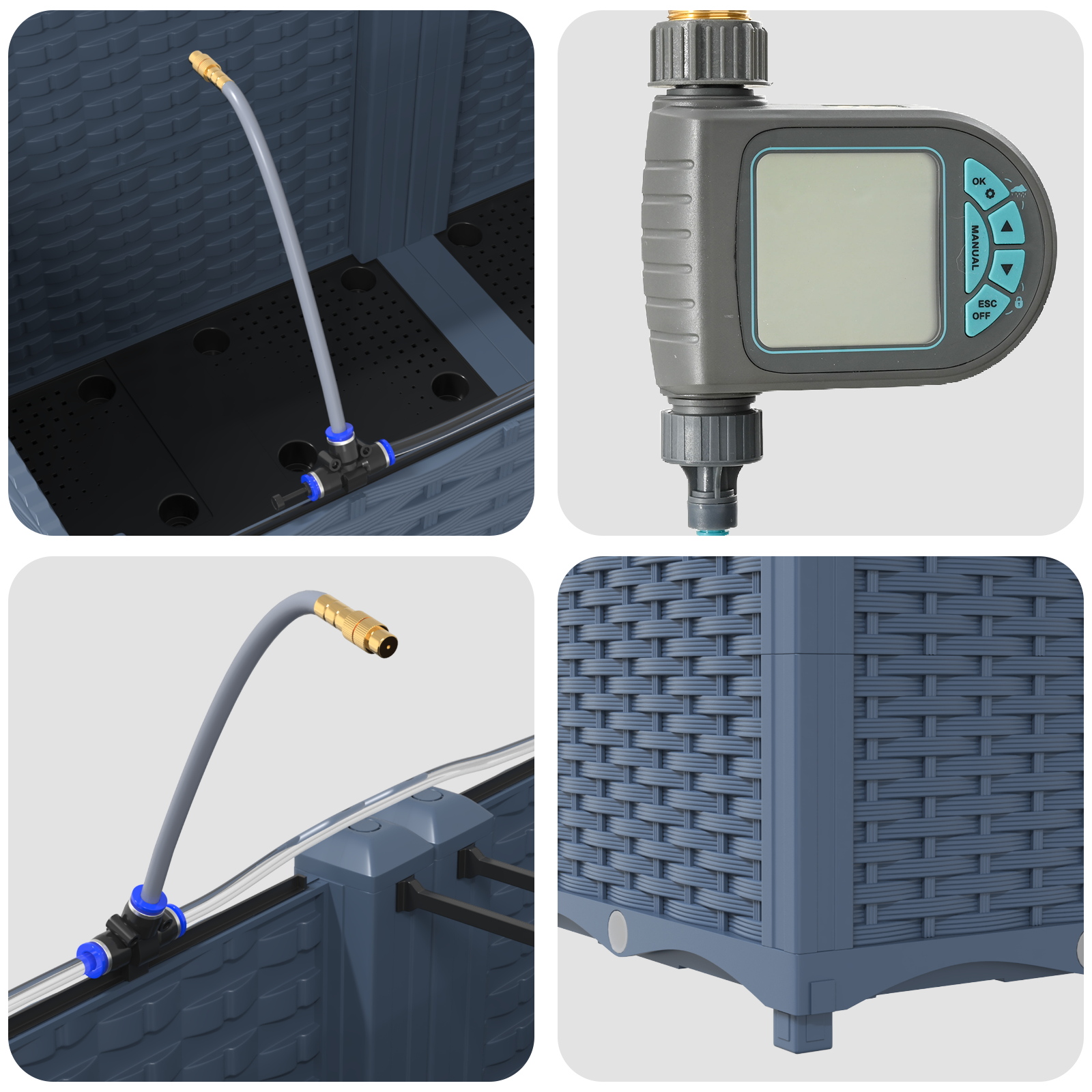 This planter box is a great all-rounder for outdoor gardening. It has a cool, modern style with a simple and clean look, making it a lovely addition to any garden or terrace. Whether you're sprucing up your patio with bright flowers or growing herbs for cooking, this planter will boost the charm of your outdoor space. Thanks to its sturdy build and practical design, it promises a long-lasting gardening experience. Sleek Modern Style This planter box has a simple and functional design. Its clean lines and minimal embellishments fit perfectly with any garden or terrace style, adding a touch of elegance to your outdoor space. UV Resistant Construction Made from UV-resistant steel, it promises to stand up to the sun. This strong material keeps the planter looking great and helps it last season after season, ensuring a trustworthy home for your plants. Built-in Irrigation System Enjoy an integrated watering system that makes taking care of your plants a breeze and helps them grow well. This handy feature cuts down on the need for constant watering, so you can relax while your garden thrives. Ample Plant Storage With loads of room, this planter can hold a variety of plants, from showy flowers to tasty herbs. Its spacious design lets you get creative with your garden layout, ensuring every plant has enough space to flourish. Convenient Care Process To keep your planter looking sharp, just wipe it down with a clean cloth to clear off dust. Keep it out of direct sunlight to help it last longer, and make sure everything is securely connected if you need to take it apart or move it—these simple tips will help keep it in great shape over time.
