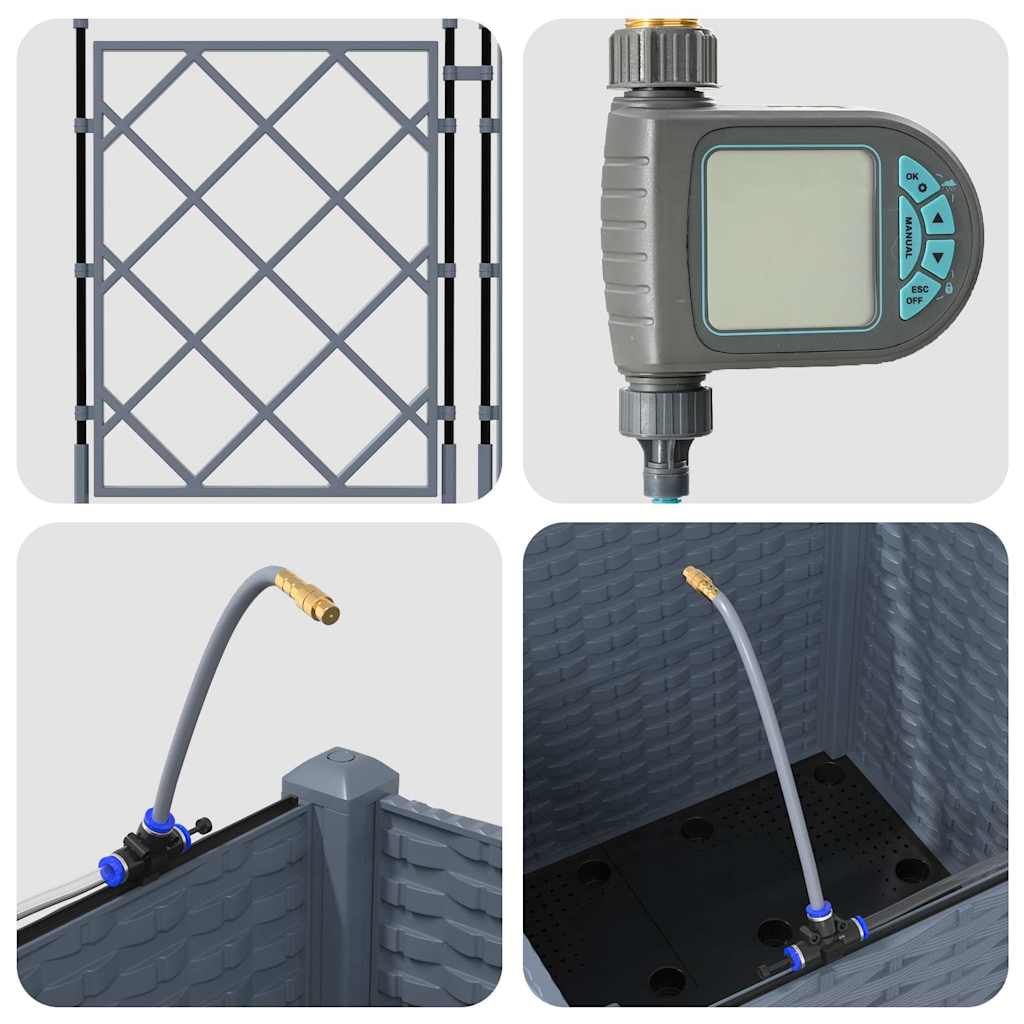 This planter box is a great all-rounder for outdoor gardening. It has a cool, modern style with a simple and clean look, making it a lovely addition to any garden or terrace. Whether you're sprucing up your patio with bright flowers or growing herbs for cooking, this planter will boost the charm of your outdoor space. Thanks to its sturdy build and practical design, it promises a long-lasting gardening experience. Sleek Modern Style This planter box has a simple and functional design. Its clean lines and minimal embellishments fit perfectly with any garden or terrace style, adding a touch of elegance to your outdoor space. UV Resistant Construction Made from UV-resistant steel, it promises to stand up to the sun. This strong material keeps the planter looking great and helps it last season after season, ensuring a trustworthy home for your plants. Built-in Irrigation System Enjoy an integrated watering system that makes taking care of your plants a breeze and helps them grow well. This handy feature cuts down on the need for constant watering, so you can relax while your garden thrives. Ample Plant Storage With loads of room, this planter can hold a variety of plants, from showy flowers to tasty herbs. Its spacious design lets you get creative with your garden layout, ensuring every plant has enough space to flourish. Convenient Care Process To keep your planter looking sharp, just wipe it down with a clean cloth to clear off dust. Keep it out of direct sunlight to help it last longer, and make sure everything is securely connected if you need to take it apart or move it—these simple tips will help keep it in great shape over time.