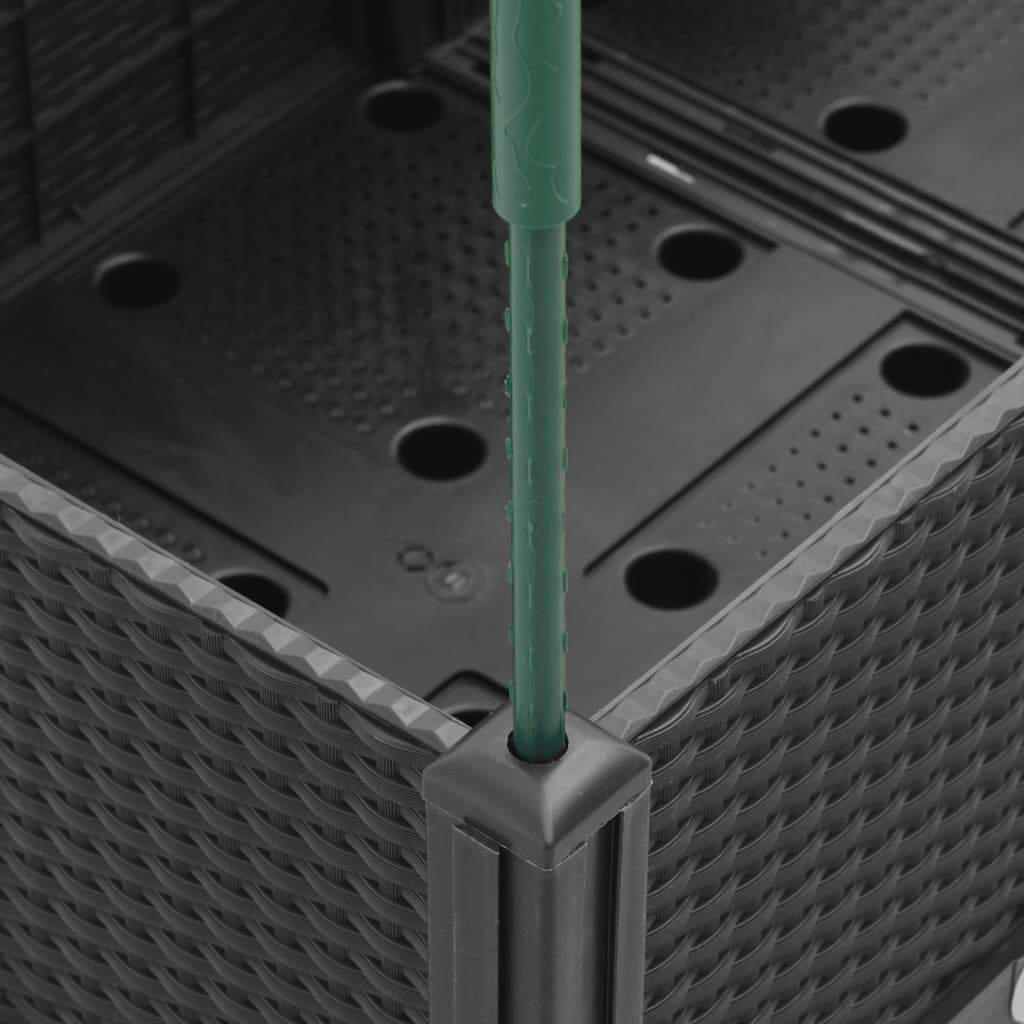 This garden planter with trellis is an excellent choice for climbing plants in your garden, patio and terrace. Durable material: Polypropylene is a popular plastic that is also one of the most used materials in outdoor furniture. It's lightweight, tough, and resistant to impact.Generous capacity: The outdoor planter provides plenty of space for growing all your vegetables, flowers and other plants.Practical design: The ideal bottom layer helps retain moisture and allows for easy drainage. Additionally, the integrated trellis offers great support for growing climbing plants such as tomatoes, peas, and roses.Beautiful rattan look: The patio planter is designed with a rattan look, bringing an elegant charm to your living space.Elevated design: The elevated design of this planter box can protect your plants from weeds and pests.
