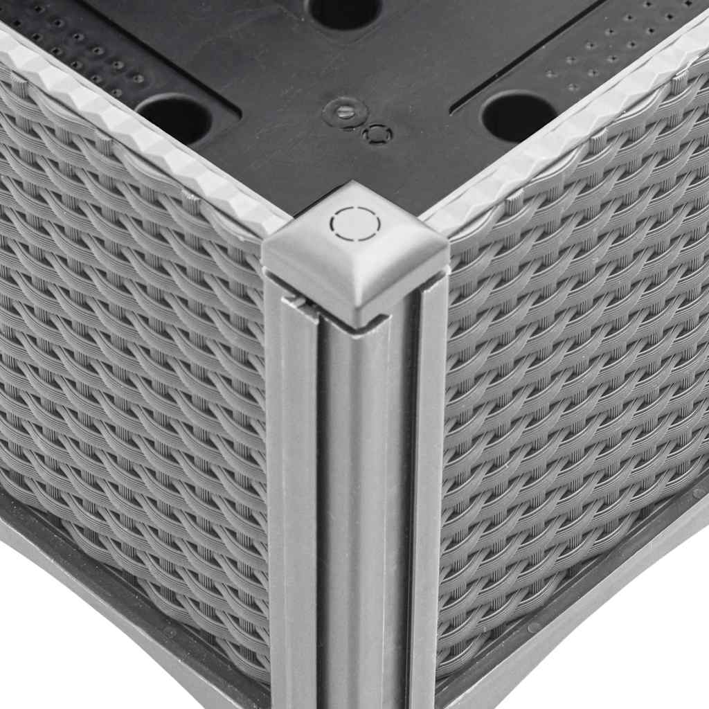 This garden planter with trellis is an excellent choice for climbing plants in your garden, patio and terrace. Durable material: Polypropylene is a popular plastic that is also one of the most used materials in outdoor furniture. It's lightweight, tough, and resistant to impact.Generous capacity: The outdoor planter provides plenty of space for growing all your vegetables, flowers and other plants.Practical design: The ideal bottom layer helps retain moisture and allows for easy drainage. Additionally, the integrated trellis offers great support for growing climbing plants such as tomatoes, peas, and roses.Beautiful rattan look: The patio planter is designed with a rattan look, bringing an elegant charm to your living space.Elevated design: The elevated design of this planter box can protect your plants from weeds and pests.