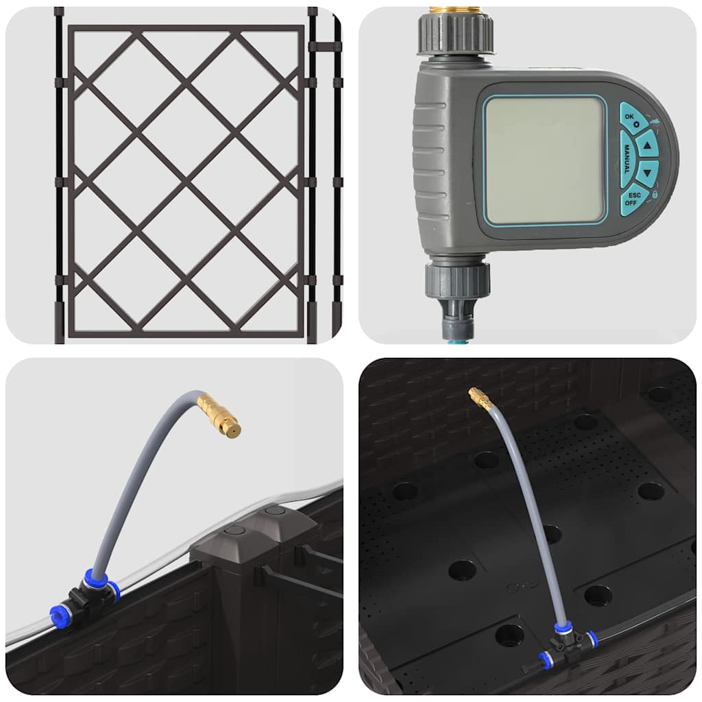 This planter box is a great all-rounder for outdoor gardening. It has a cool, modern style with a simple and clean look, making it a lovely addition to any garden or terrace. Whether you're sprucing up your patio with bright flowers or growing herbs for cooking, this planter will boost the charm of your outdoor space. Thanks to its sturdy build and practical design, it promises a long-lasting gardening experience. Sleek Modern Style This planter box has a simple and functional design. Its clean lines and minimal embellishments fit perfectly with any garden or terrace style, adding a touch of elegance to your outdoor space. UV Resistant Construction Made from UV-resistant steel, it promises to stand up to the sun. This strong material keeps the planter looking great and helps it last season after season, ensuring a trustworthy home for your plants. Built-in Irrigation System Enjoy an integrated watering system that makes taking care of your plants a breeze and helps them grow well. This handy feature cuts down on the need for constant watering, so you can relax while your garden thrives. Ample Plant Storage With loads of room, this planter can hold a variety of plants, from showy flowers to tasty herbs. Its spacious design lets you get creative with your garden layout, ensuring every plant has enough space to flourish. Convenient Care Process To keep your planter looking sharp, just wipe it down with a clean cloth to clear off dust. Keep it out of direct sunlight to help it last longer, and make sure everything is securely connected if you need to take it apart or move it—these simple tips will help keep it in great shape over time.