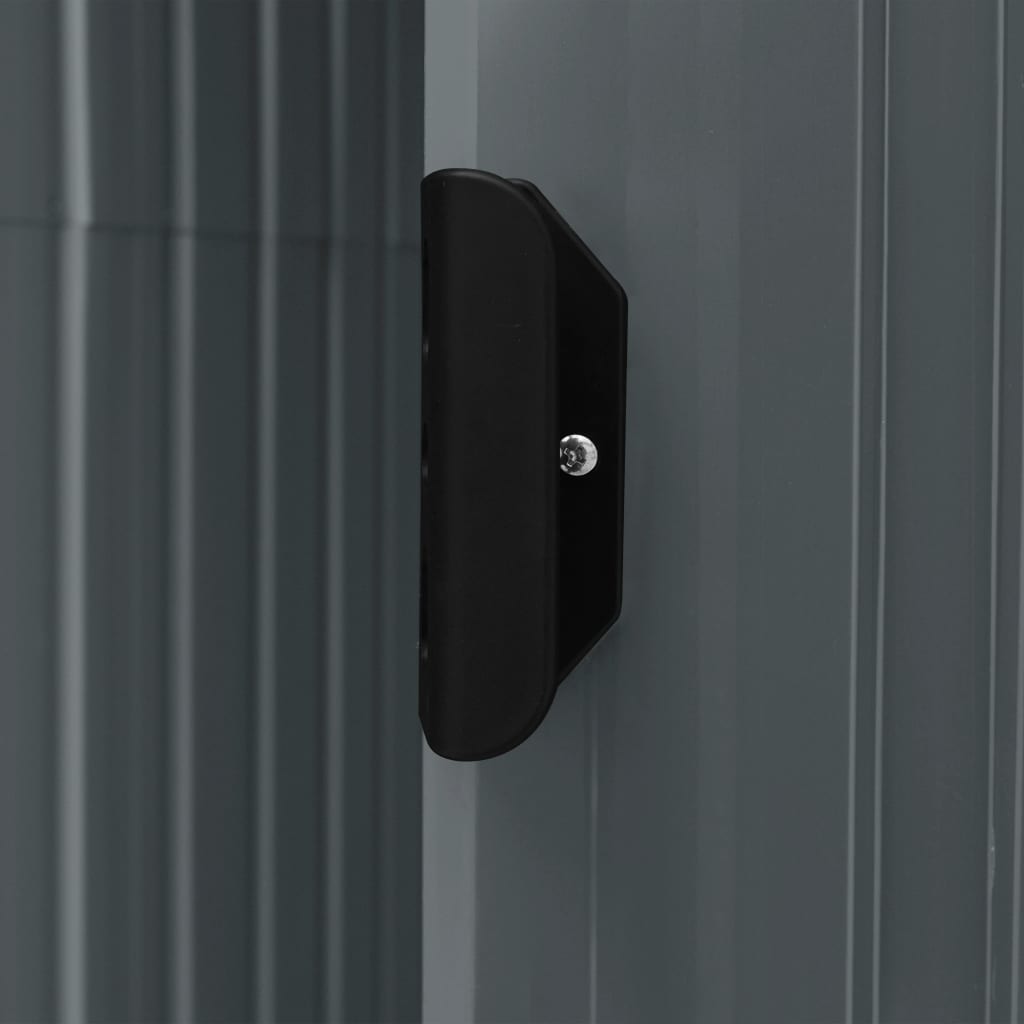 Our garden storage shed with rack is ideal for storing a wide variety of tools, garden furniture and garden equipment. The garden shed does not only offer protection from dirt and dust but also against wind and weather. This storage house is constructed of galvanised iron so it is stable and easy to maintain. The garden shed has vents both in the front and back, ensuring excellent ventilation. Its single sliding door with plastic door handle in the front allows easy entry and exit. This outdoor storage shed is also easy to assemble.