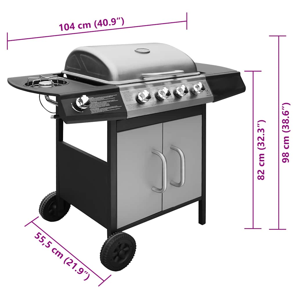 Gas Barbecue Grill 4+1 Cooking Zone Black and Silver