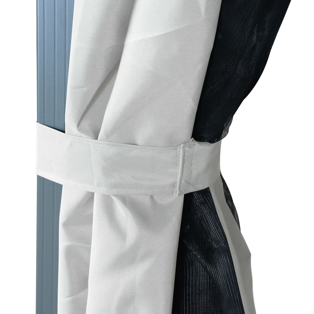 This gazebo with curtains features a classic and elegant design, which will cater the perfect sunshade shelter for outdoor events, such as dinners, BBQs, family gatherings along with other activities. The roof, made of Oxford fabric with PA painting, guards you from the glare and harmful UV rays of direct sunlight. The gazebo is solidly constructed from strong aluminium and steel, and is consequently resistant to rust and very stable. The pavilion is delivered with 4 sidewalls, which can be drawn in bad weather. Mesh screens are also included to keep bugs out while ensure the well air circulation. Hook and loop fasteners are also included for easy attachment. Additionally, the string light creates a cosy atmosphere in your garden when the sun goes down. The lights bring no pollutions to the environment as it is charged by solar energy during the day. The gazebo can be easily fixed to the ground with the included fixing accessories. Note: This product should NEVER be used under bad weather, such as strong wind, heavy rain, snow, storm, etc.