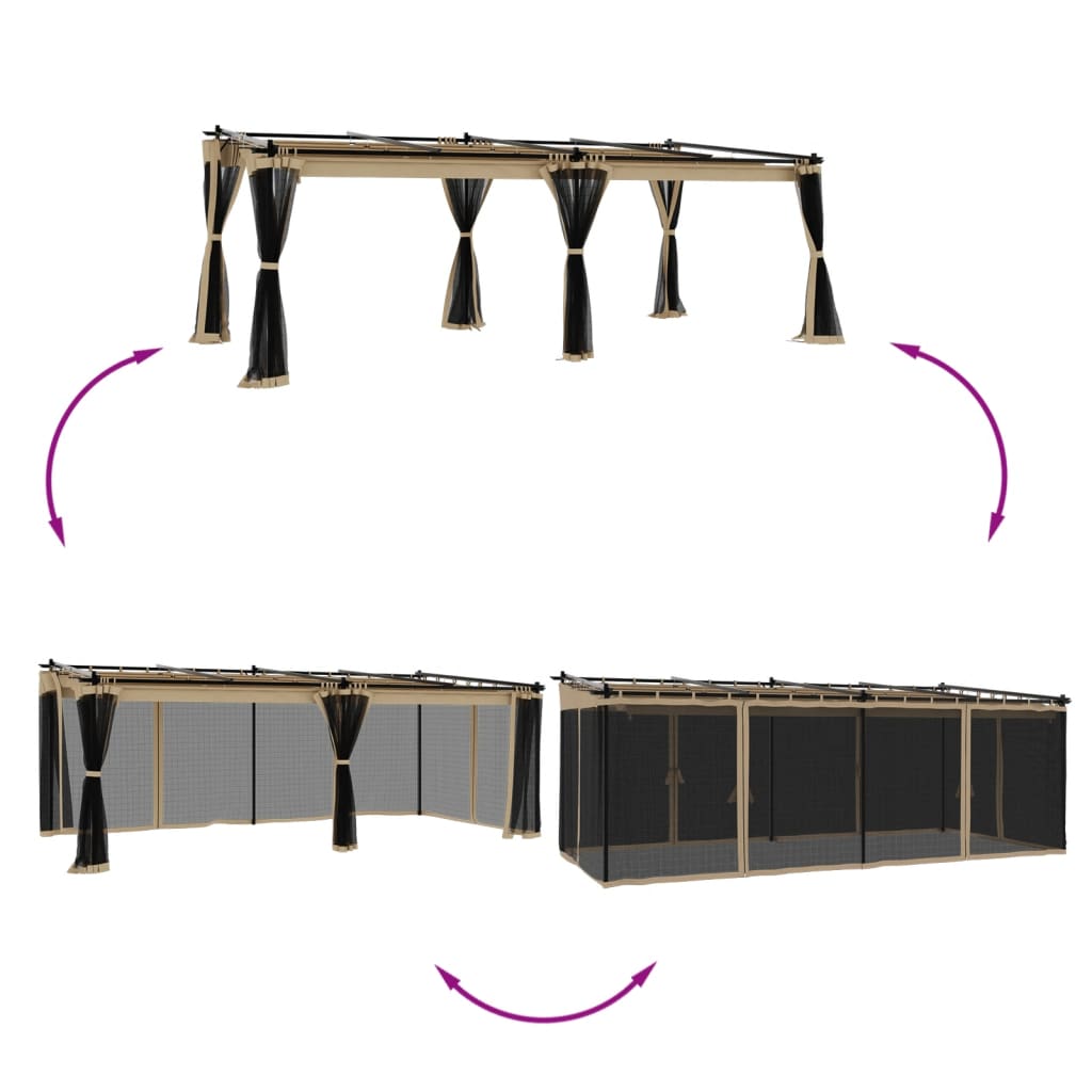 Gazebo with Mesh Walls Taupe 6x3 m Steel