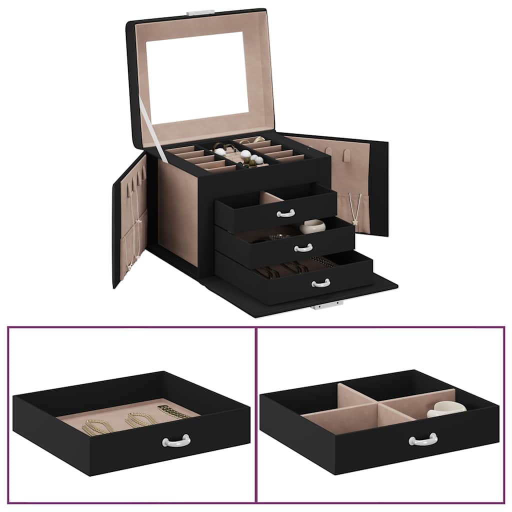 Jewellery Box 4-Layer with Mirror Lockable Black 22.5x17.5x16.5 cm