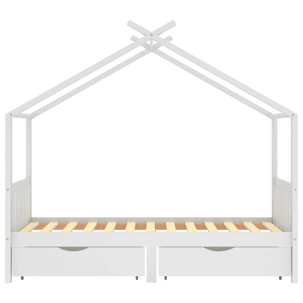 Kids Bed Frame with Drawers White Solid Pine Wood 90x200 cm