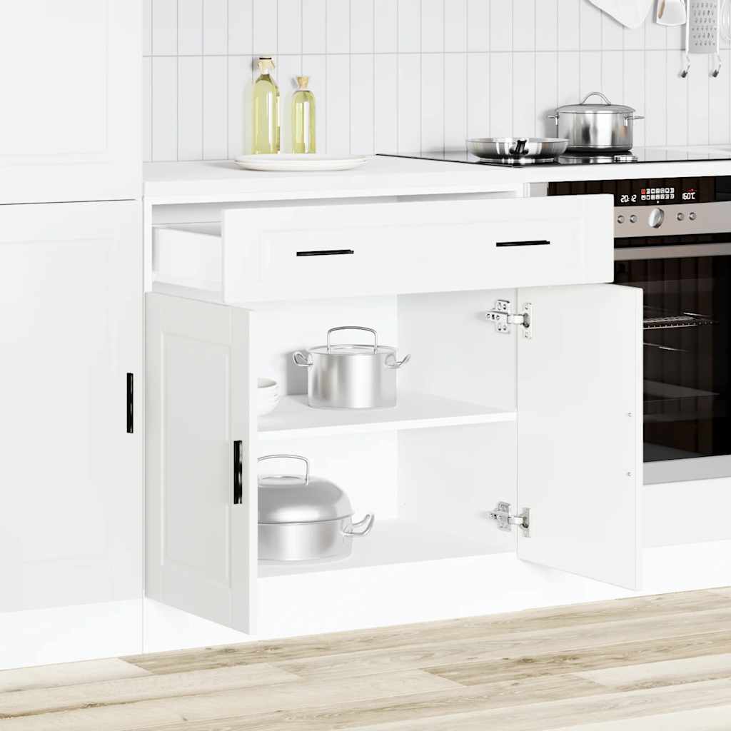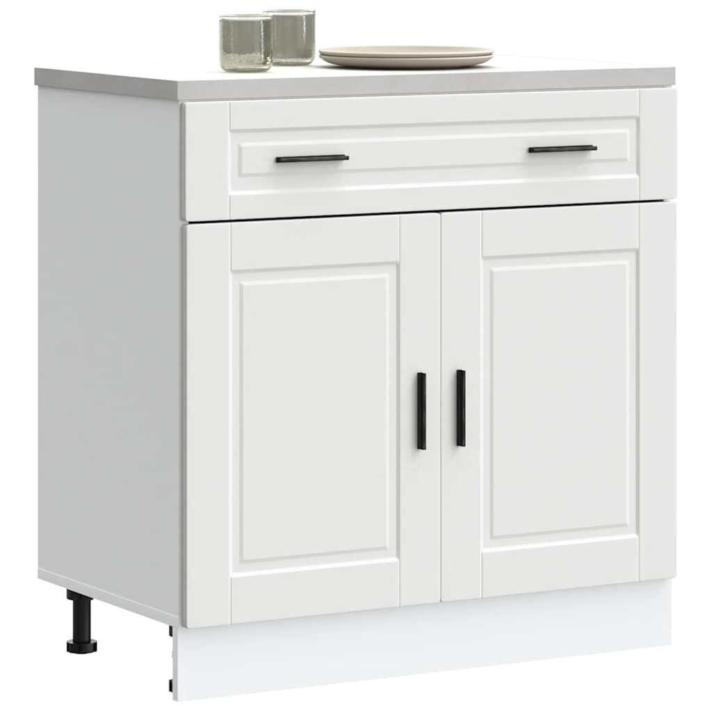 This kitchen base cabinet optimises your kitchen space, providing ample storage space for your personal belongings! Stable and durable material: Engineered wood is a durable and stable material with a smooth surface that is resistant to moisture, warping, and splitting, making it a reliable choice for a variety of projects.Ample storage space: The kitchen base cabinet offers sufficient space to store bowls, plates, pots, and other kitchen appliances.Practical doors: The door helps maintain a clean and organised space by concealing kitchen appliances and clutter behind them.Adjustable feet: The feet of this cabinet can be adjusted in height to suit your kitchen layout.Easy to maintain: Thanks to its smooth surface, this kitchen base cabinet is easy to clean with a damp cloth and requires less maintenance. Warning:To prevent it from tipping over, this product must be used with the provided wall attachment device. Good to know:Screw(s) and plug(s) for inside the wall are not included. Seek and use screw(s) and plug(s) suitable for your walls. If you are uncertain, seek professional advice. Read and follow each step of the instruction carefully.