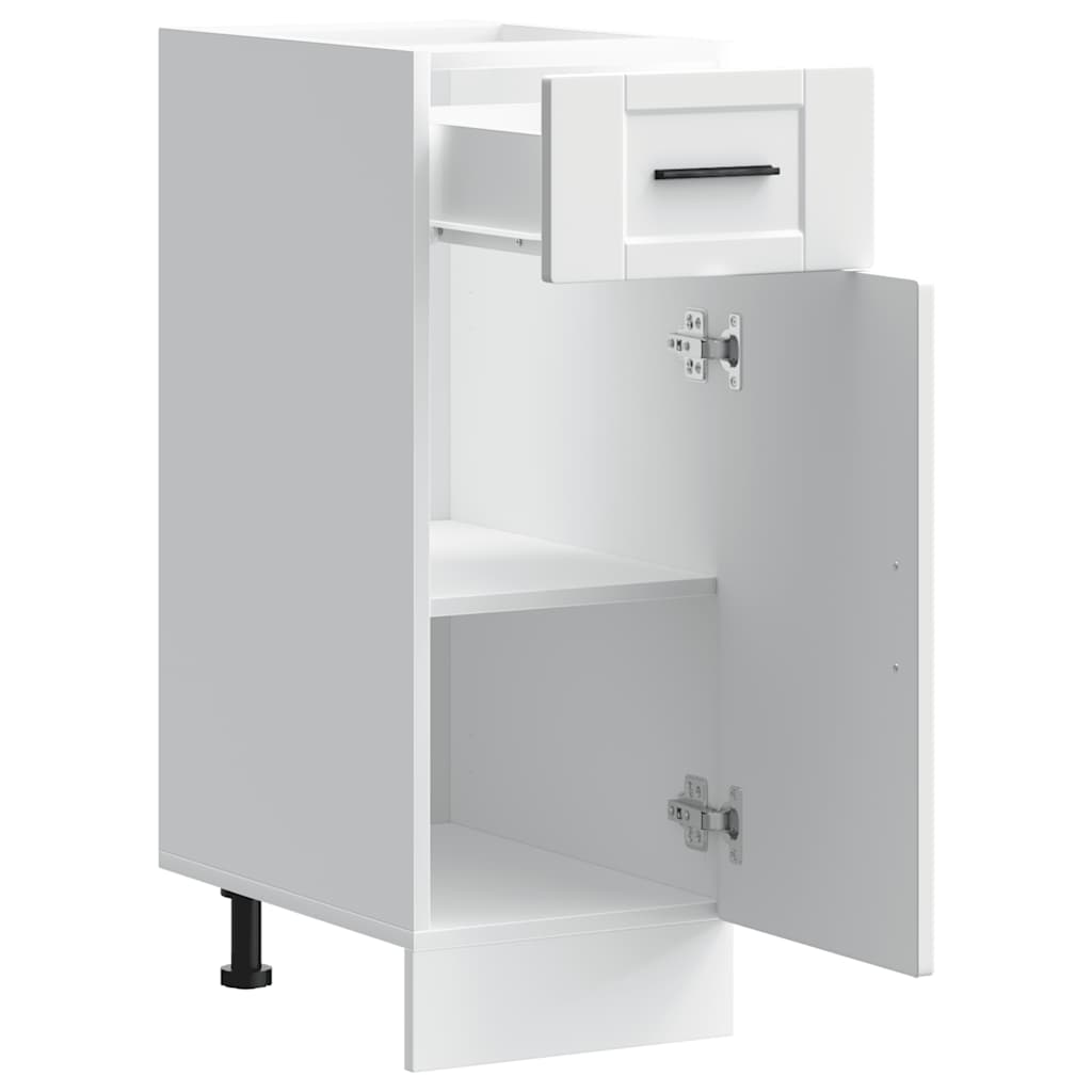 This kitchen base cabinet optimises your kitchen space, providing ample storage space for your personal belongings! Stable and durable material: Engineered wood is a durable and stable material with a smooth surface that is resistant to moisture, warping, and splitting, making it a reliable choice for a variety of projects.Ample storage space: The kitchen base cabinet offers sufficient space to store bowls, plates, pots, and other kitchen appliances.Practical doors: The door helps maintain a clean and organised space by concealing kitchen appliances and clutter behind them.Adjustable feet: The feet of this cabinet can be adjusted in height to suit your kitchen layout.Easy to maintain: Thanks to its smooth surface, this kitchen base cabinet is easy to clean with a damp cloth and requires less maintenance. Warning:To prevent it from tipping over, this product must be used with the provided wall attachment device. Good to know:Screw(s) and plug(s) for inside the wall are not included. Seek and use screw(s) and plug(s) suitable for your walls. If you are uncertain, seek professional advice. Read and follow each step of the instruction carefully.